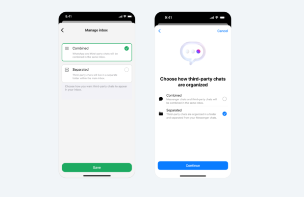 Of je nu WhatsApp of Messenger gebruikt, Meta biedt je twee manieren om je berichten van apps van derden te sorteren: “gecombineerd” of “afzonderlijk”.