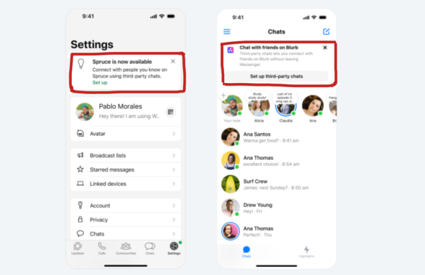 Als gevolg hiervan zal het bedrijf van Mark Zuckerberg meldingen weergeven boven in het scherm om gebruikers te informeren over het bestaan van andere berichtendiensten. Op dezelfde manier kondigt Meta aan: “We zullen gebruikers op de hoogte stellen wanneer er een nieuwe berichtendienst van derden beschikbaar is“.