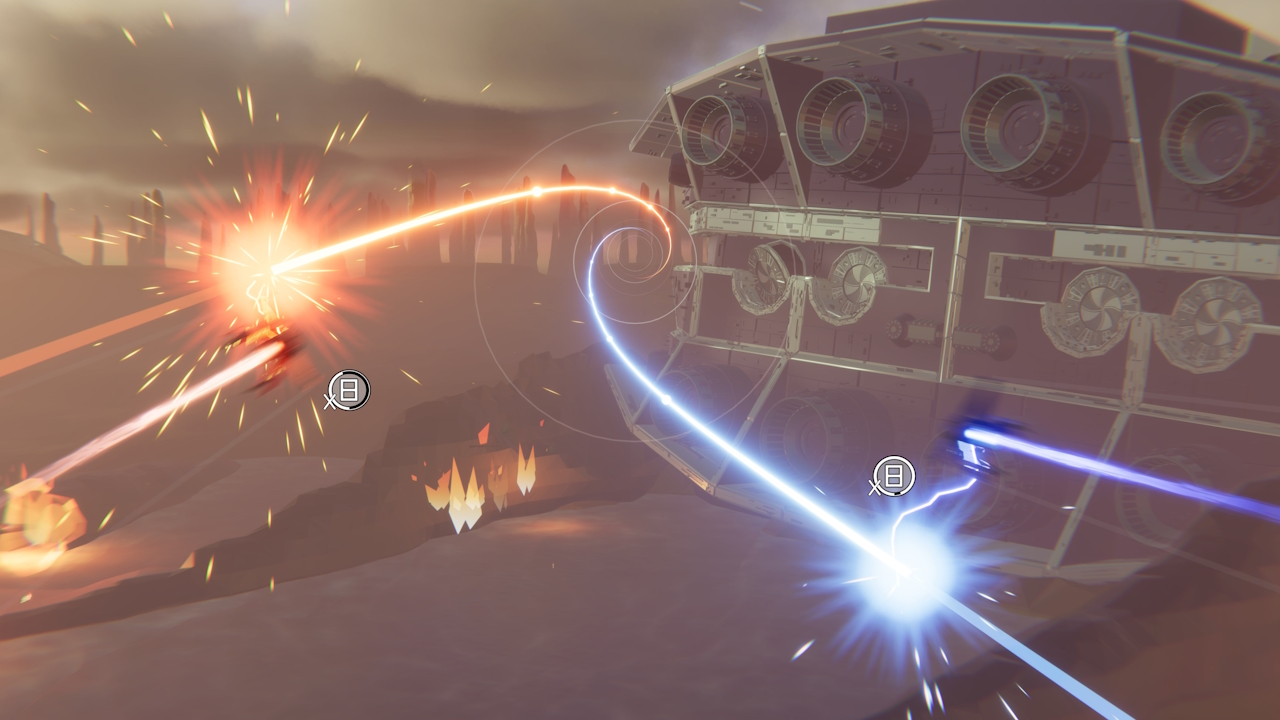 Eindelijk, en dit is de belangrijkste nieuwe functie van dit vervolg, heeft Mad Fellows een multiplayermodus voor twee spelers geïntegreerd. Online kun je een vriend uitnodigen of gebruikmaken van matchmaking om een spelpartner te vinden. Omdat de titel op het moment van schrijven nog niet officieel was uitgebracht, konden we hem nog niet uitgebreid testen. We hebben echter wel de kans gekregen om de lokale multiplayer van dichtbij te bekijken. Er zijn twee keuzes: coöperatief of competitief. In het eerste geval spelen de twee spelers samen, elk met hun eigen score en vermenigvuldiger. Elke speler heeft zijn eigen linten, blauw voor de eerste en oranje voor de tweede. De eindscore is echter de som van de scores van beide spelers en ze mogen allebei alle vijanden die ze tegenkomen neerschieten. In het tweede speltype heeft elke speler zijn eigen linten, vijanden, vermenigvuldiger en score. Het doel is om meer secties van het circuit te beheersen dan de tegenstander. Beide speltypen zijn erg leuk, vooral omdat het spel onder alle omstandigheden vloeiend blijft. De enige twee punten waarover we kunnen klagen zijn de leesbaarheid van de actie op sommige momenten, ook al is er veel moeite gedaan om verwarring te beperken, en de nodige precisie die soms een beetje wordt misbruikt om trajecten aan te houden.